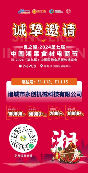 諸城市永創(chuàng)機(jī)械 良之隆 展會(huì) 邀請(qǐng)函星辰浪漫城市有光,煙火日常凡人有夢(mèng)。又是一年初秋至,良之隆第七屆中國湘菜食